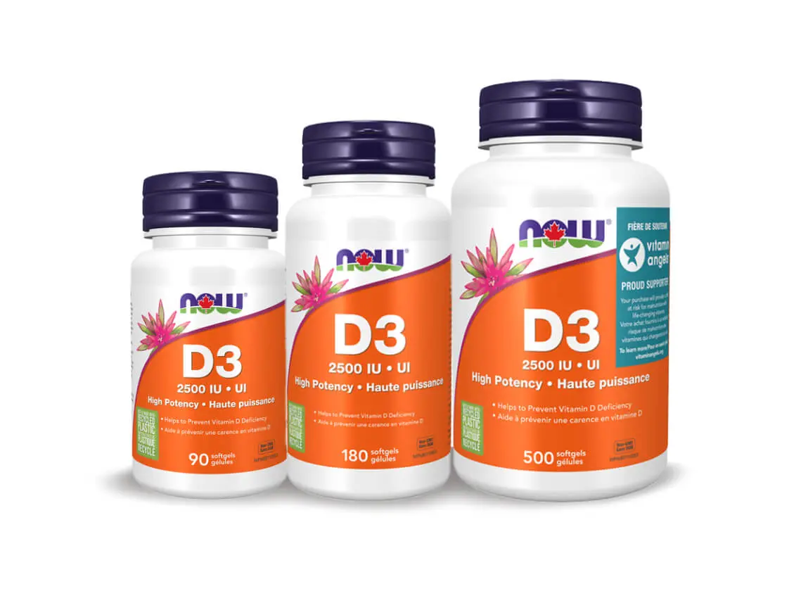 Maintain good levels of Vitamin D3 all year around with NOW® High Potency 2500 IU Vitamin D3, available in three sizes.