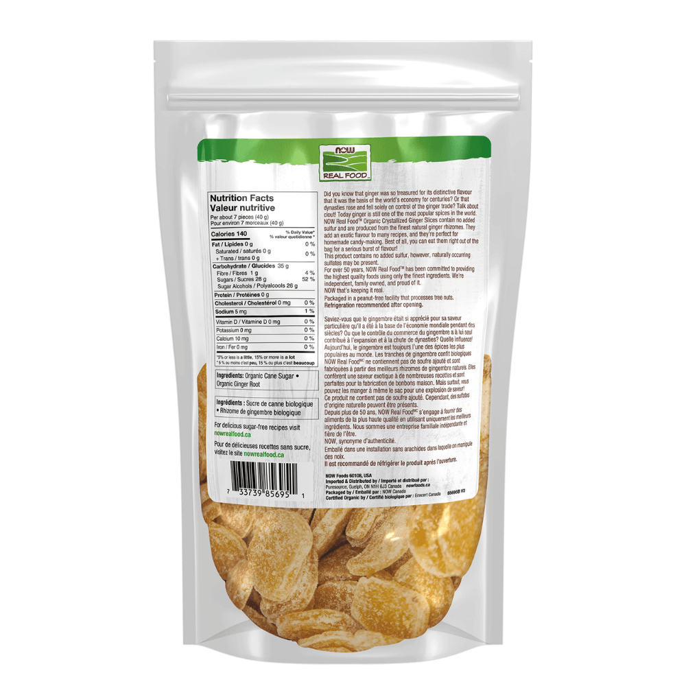 NOW Real Food® Organic Crystallized Ginger Slices contain no added Sulphur and are produced from the finest natural ginger rhizomes. They add an exotic flavour to many recipes and